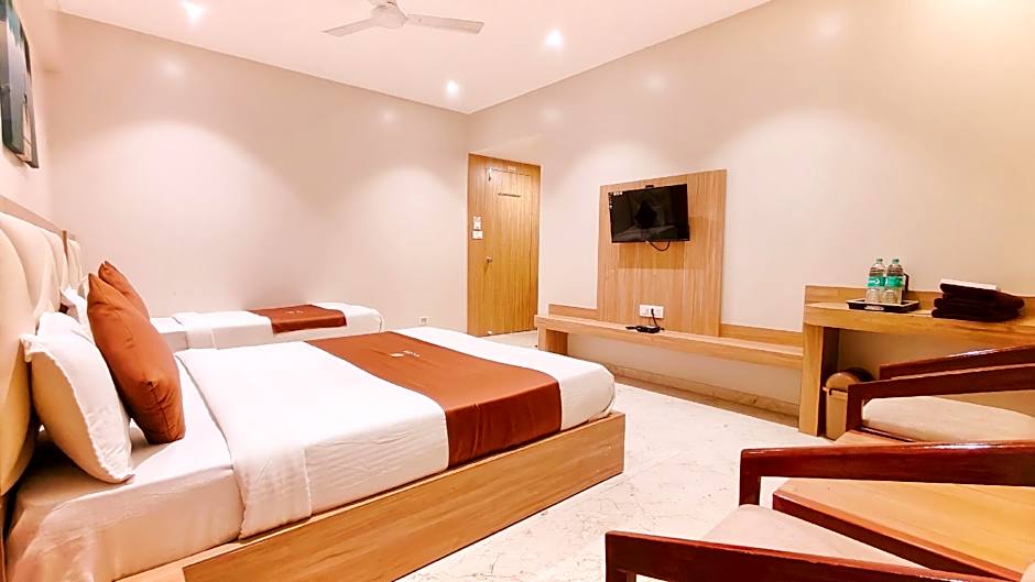 The hotel is relatively new, and the rooms are spacious. The location is excellent, just a 6-minute walk to the temple. The staff is very helpful. Rahul, the manager, contacted me the day before my stay and arranged a reasonably priced cab to pick me up. Since my train to Mumbai was in the evening, he allowed a late check-out and provided a space for me to rest even after checking out.