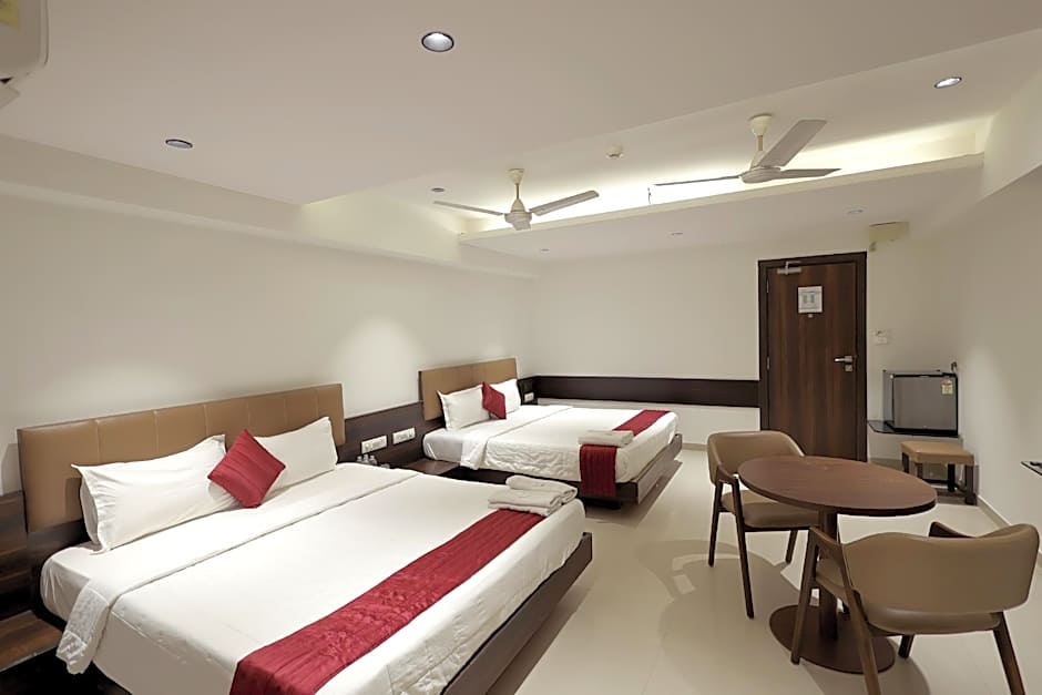 Hotel Shagun Rooms & Banquet in Surat offers a variety of room options. The Deluxe Room is for single occupancy and has a double bed, accommodating up to 3 adults. It has a size of 226 sqft and does not allow smoking. The Quadruple Room is also for single occupancy and has 2 double beds, accommodating up to 3 adults. It has a larger size of 334 sqft and does not allow smoking. The Budget Double Room is for single occupancy and has a twin bed, accommodating 1 adult. It has a smaller size of 161 sqft and also does not allow smoking.