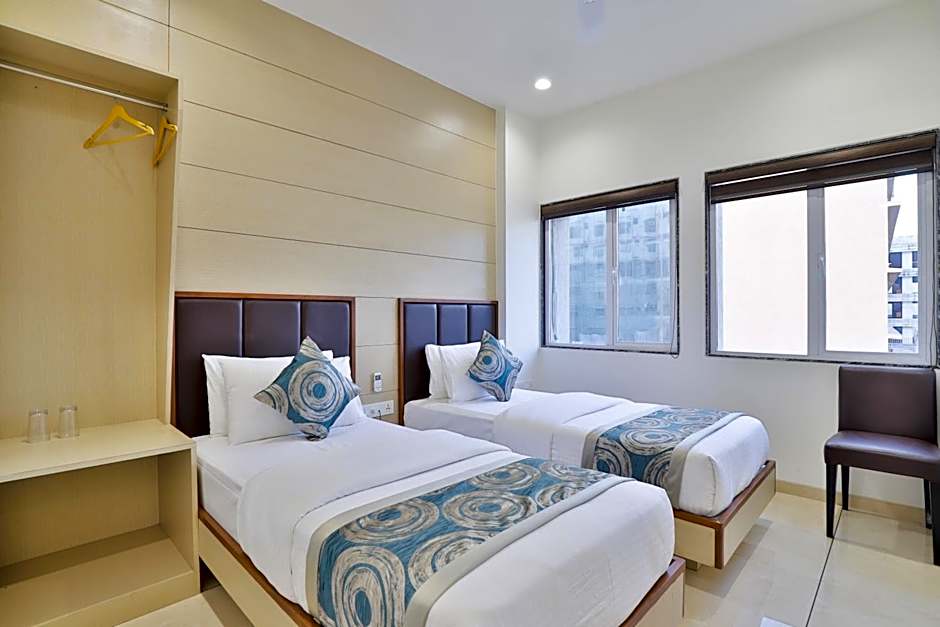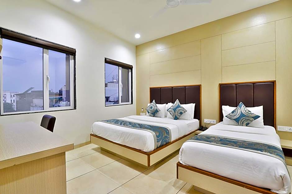Address: Railway Station Area Ward No.7a, Nondh No.50, Sufi Baug, Railway Station, Railway Station Area, Surat Ward No.7a, Nondh No.50, Sufi Baug, Railway Station, Railway Station Area, Surat. Featured amenities include Restaurant, Private Parking (free), Wifi (free), Room service, Air conditioning, Parking On Site (free), 24-hour front desk, Non-smoking rooms, Elevator, Free toiletries, Kids' meals (extra charges).