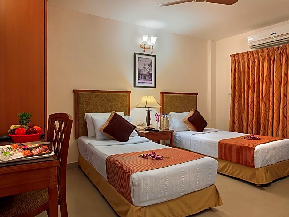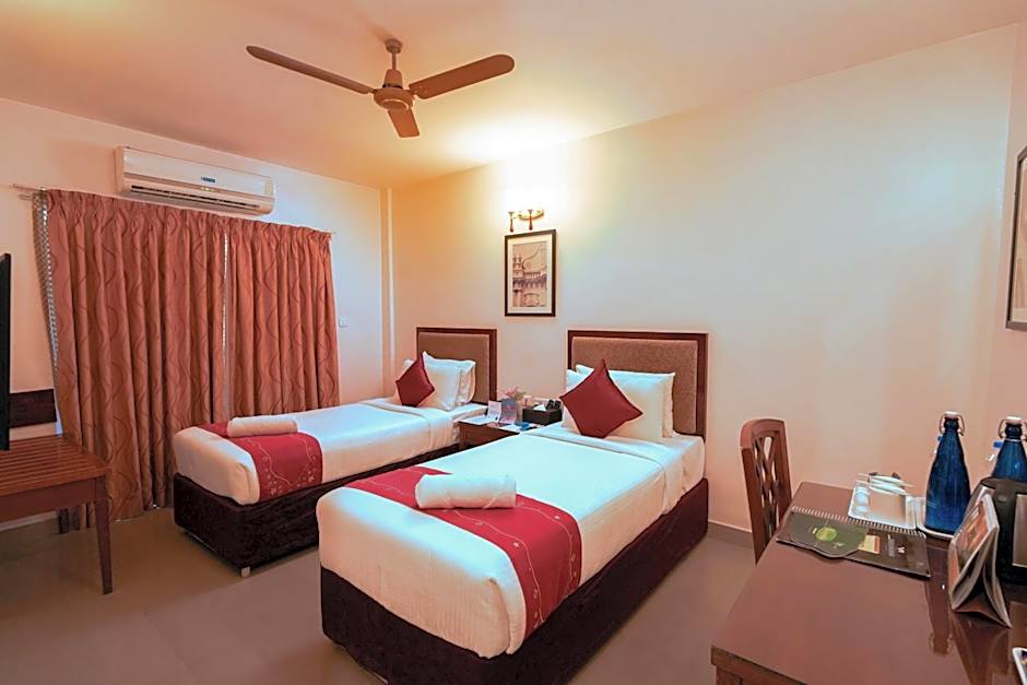 The MGM Vailankanni hotel offers Deluxe Twin Rooms with a room size of 151 sqft. These rooms have twin beds and can accommodate 2 adults. Smoking is not allowed in these rooms.
