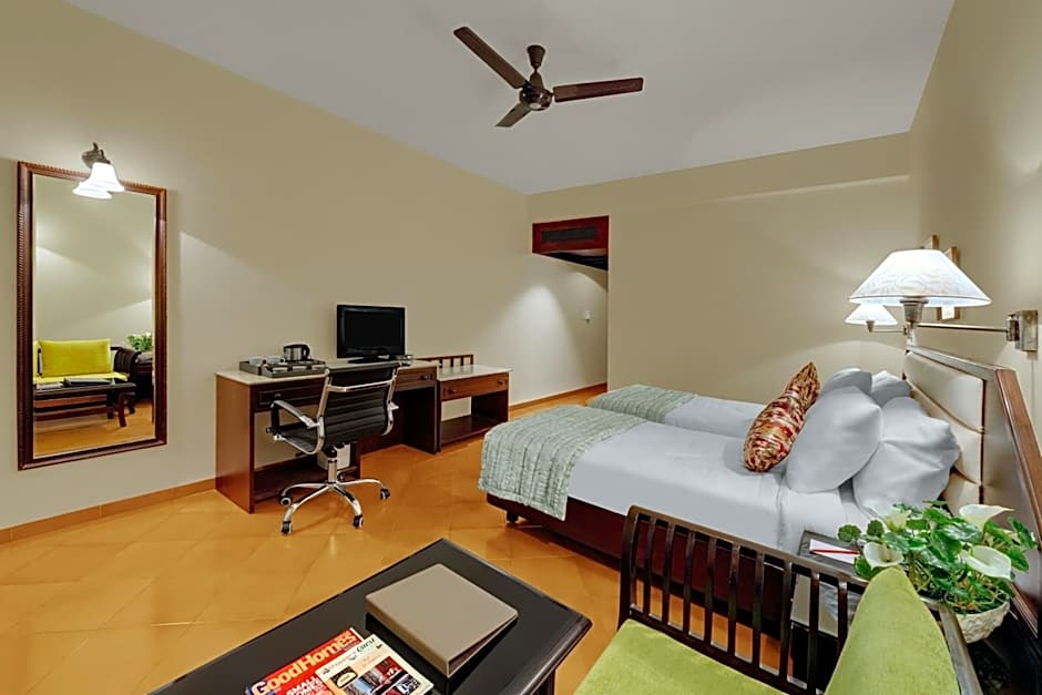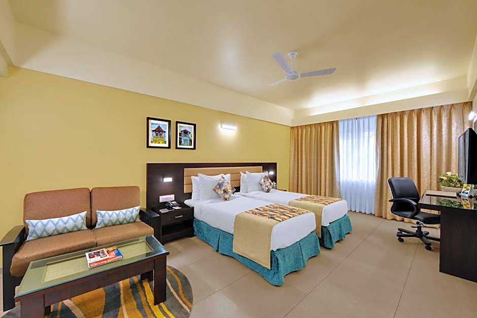 I did not opt for the breakfast, but the location was exactly right for my purpose. The rooms were large and spacious and there was adequate furniture including a good office chair. The beds were quite comfortable, The Wifi was fast I liked the greenery in the hotel premises. Room service was prompt and the food was good