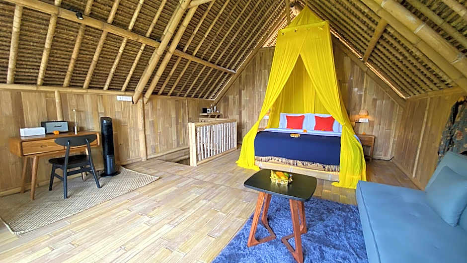 I highly recommend the bamboo hut accommodation I stayed in. Nestled in the heart of lush rice fields, it offers an unforgettable experience. The staff members are incredibly friendly and helpful, ensuring your stay is exceptional. The breathtaking views of the surrounding landscape will leave you in awe, and the bed with its mesmerizing view overlooking the rice fields is a true highlight. This place offers a unique and serene retreat.
