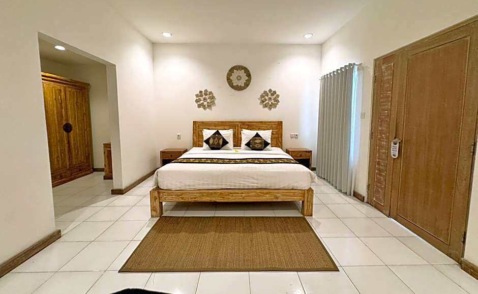 This room has only one comfortable king size bed, equipped with air conditioning, a seating area with a TV for guests to relax, a terrace with garden views, and has a private bathroom.
