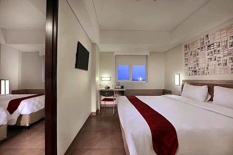 The Grand Cordela Hotel Bandung offers a variety of room types, including Deluxe Smart Twin and Deluxe Smart King rooms, both of which can accommodate 2 adults and feature Twin and King size beds respectively. The hotel also has Family Suites that can accommodate 4 adults and feature a combination of Twin and King size beds. Additionally, the hotel offers Deluxe King Rooms with Pool View and Deluxe Business Rooms, both of which can accommodate 2 adults and have King size beds. Smoking is not allowed in any of the rooms.