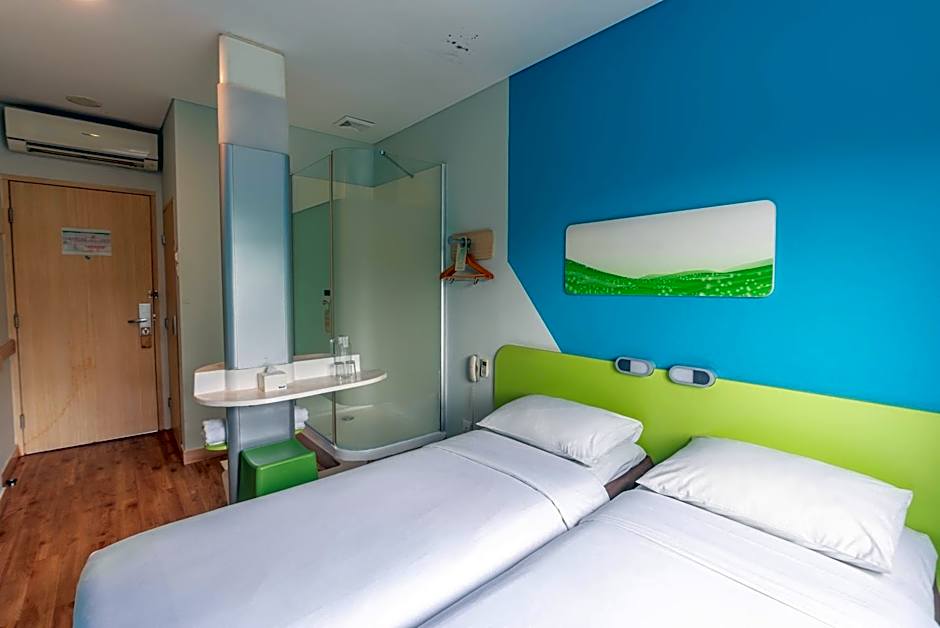 This modern twin room is air-conditioned and fitted with a flat-screen cable TV, a personal safe, and an private bathroom featuring shower facility and hairdryer.