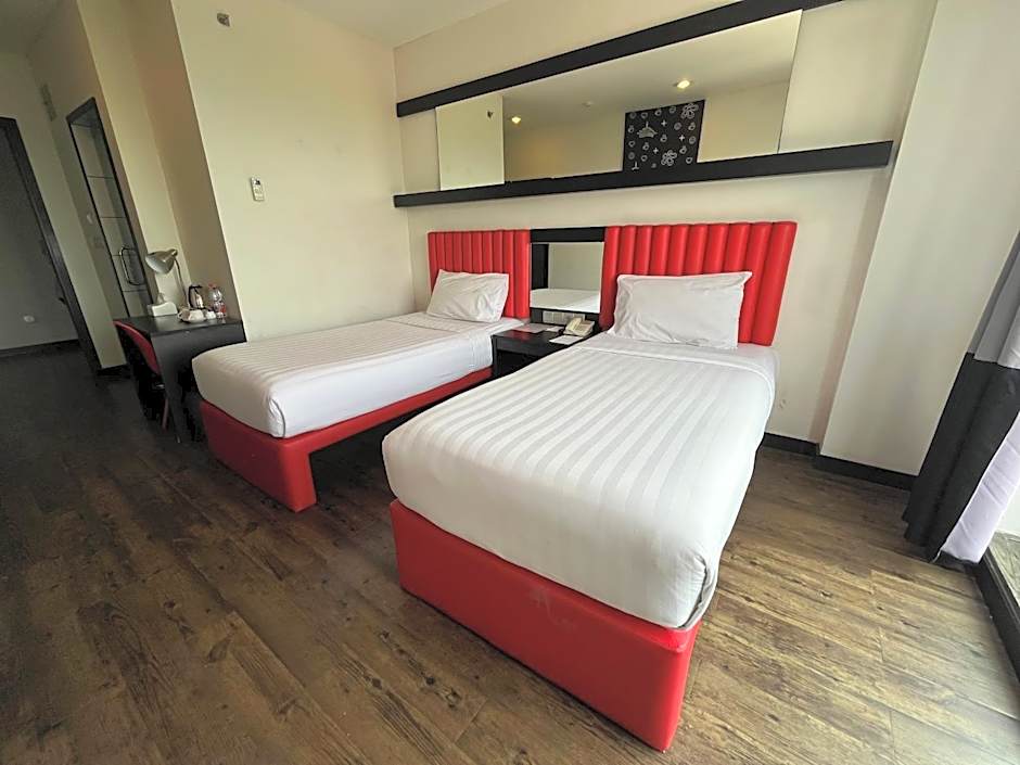 This air-conditioned twin room is modernly furnished with a personal safe, universal electricity plug points, flat-screen satellite TV and an private bathroom featuring hot and cold shower facility, hairdryer, and free toiletries. Guests can enjoy daily breakfast