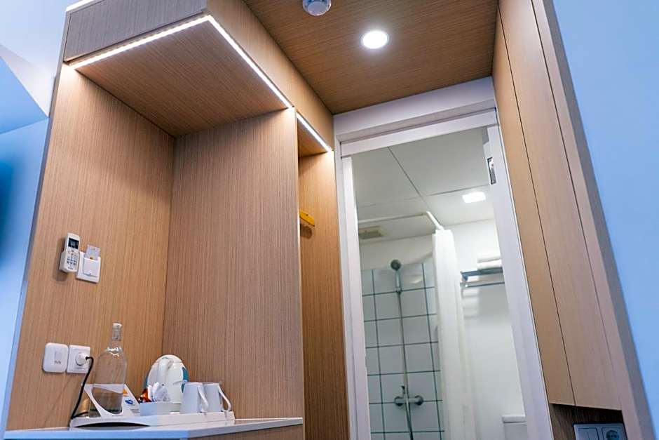 Room setup was sufficient for couple. It has all the amenities needed for short stay or transit, or form people who like to spend more times roaming the city that staying at the hotel Newly built building with sustainability mindset. I like the fact that I can refill my water myself from the available water dispenser Fair breakfast in the morning, with choice of Indonesian and Western menu.