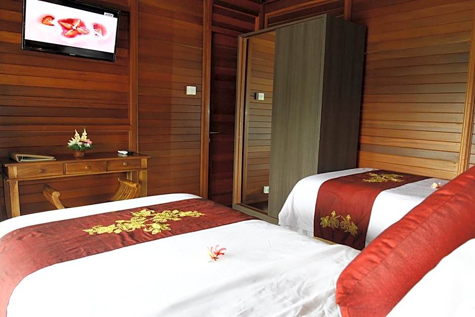 Eka and her team were the most friendly and helpful hosts! She even found me a great last minute driver to my next location.The banana pancake breakfast was a treat. I traveled during off season so it was very quiet. I wanted to see the temple and it was perfect location, just a short walk up the road and I was there! The resturaunt was closed, but they made menues available for me to order from and would bring food to my porch for dining. A lovely wood room with a cozy bed that invites you to rest, AC, & hot shower. If you want relaxation and time to visit the temple and mountain this is it.