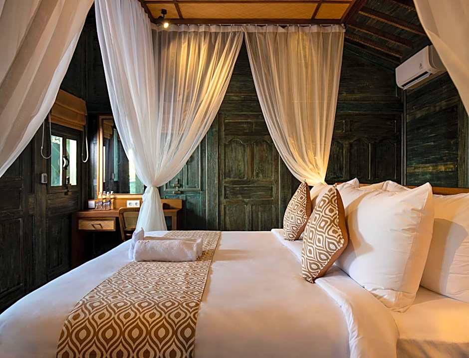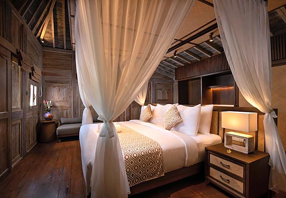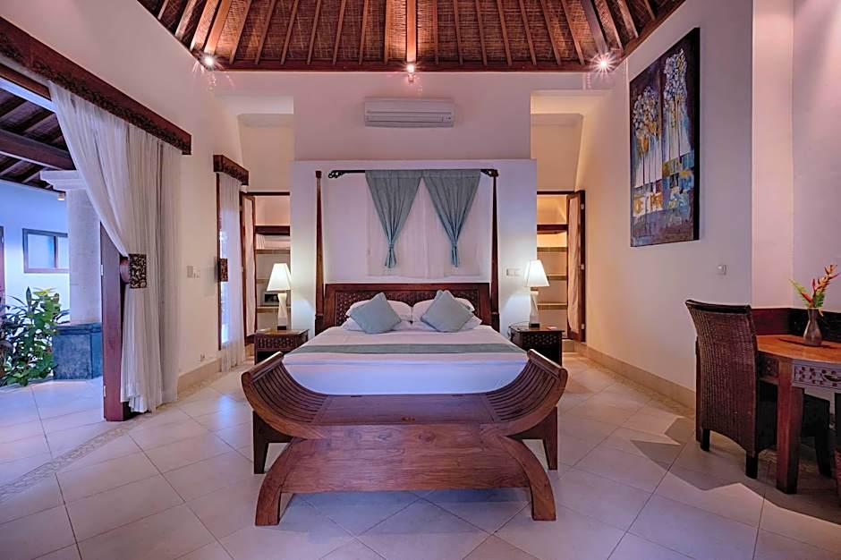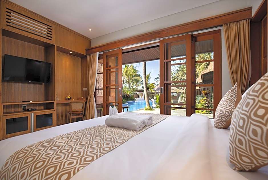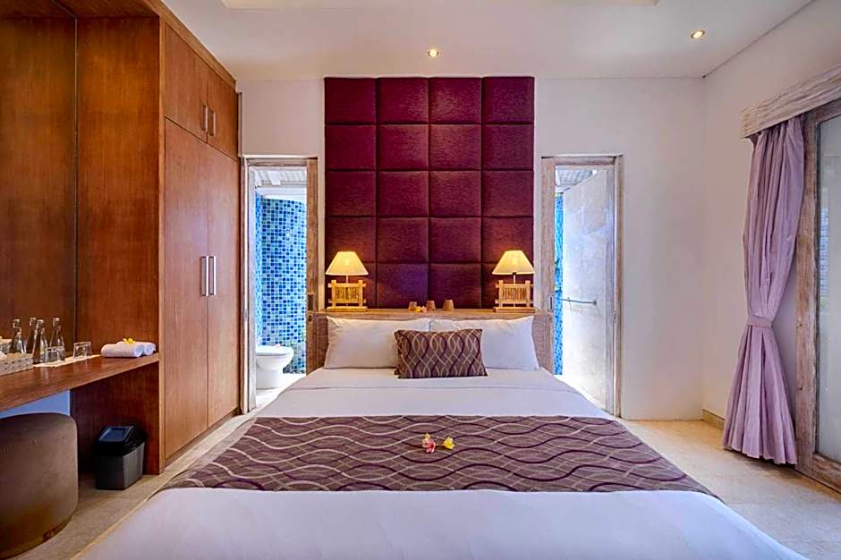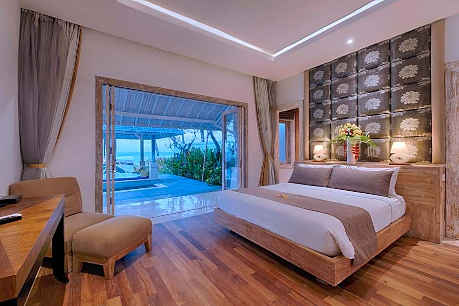 Accommodations span a range of villas and suites, from 1-bedroom options with pool views to beachfront and garden-view layouts, including multi-bedroom configurations to suit couples, families, and groups. Only cash is accepted. With its seaside vibe and proximity to Banjar Saba’s center, this destination offers a playful, relaxed stay ready for coastal adventures.