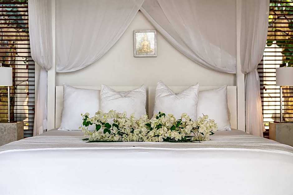 Featuring a large private outdoor space with a sun deck, this villa has a 14-yard infinity pool and a beautiful open-air lounge. The stylish bedroom and living area are accompanied by a stunning open-air bathroom with a large rain shower.