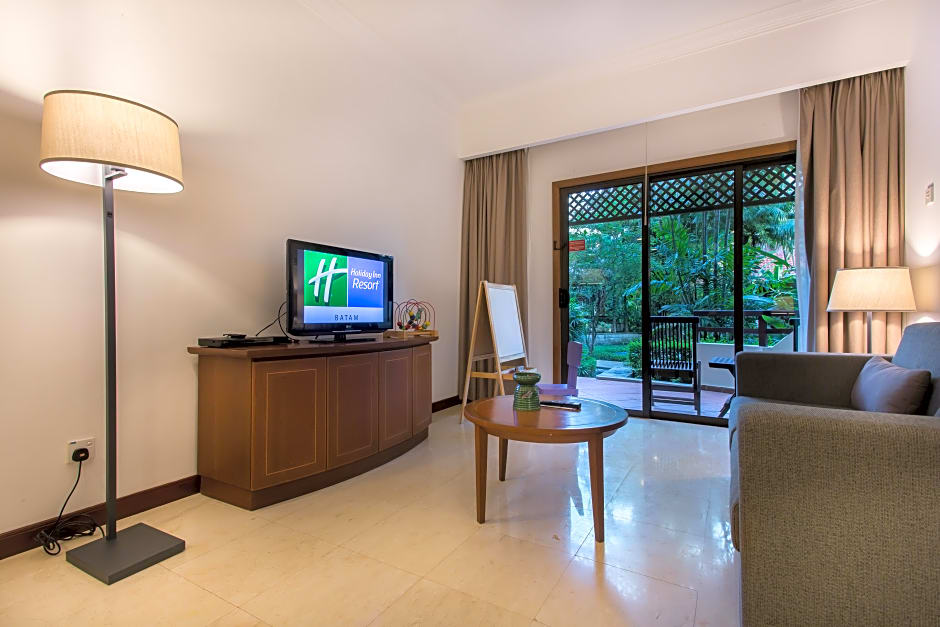 The Holiday Inn Resort Batam offers various room types including Deluxe Rooms, Family Rooms, and Suites. Occupancy ranges from 2 to 4 guests per room. Rooms feature non-smoking policies and come with a variety of bed sizes, from single to king-sized beds.