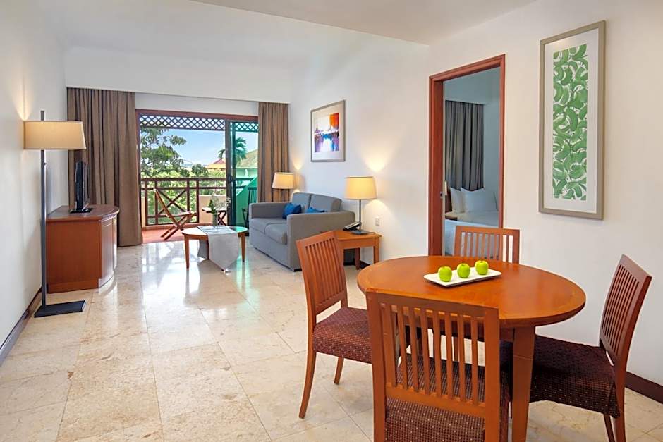 In the well-fitted kitchen, guests will find a refrigerator, kitchenware, a microwave and a tea and coffee maker. The spacious suite offers air conditioning, a mini-bar, a balcony with pool views as well as a private bathroom featuring a bath. The unit offers 2 beds.
