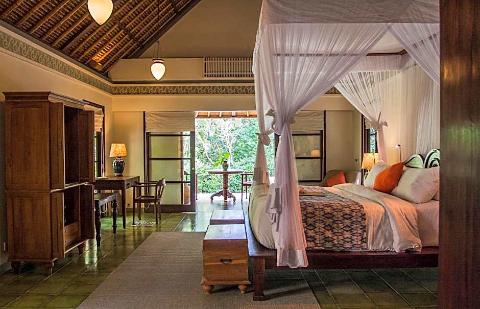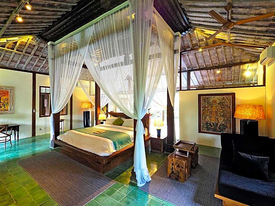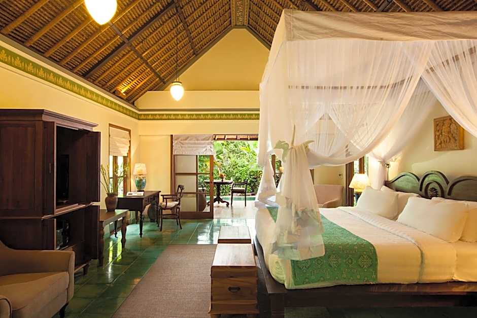 This well-appointed private villa is surrounded by lush Balinese garden and features a private outdoor pool. The villa also comes with an private bathroom featuring an outdoor shower, separate toilet and double vanities. There is also a patio with seating area.