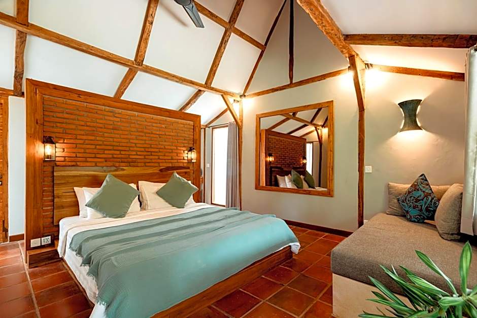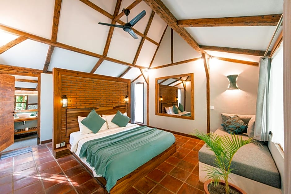 Fitted with a private veranda overlooking the gardens, this air-conditioned bungalow comes with king sized double bed and has a semi open bathroom with towels and hot shower facilities.