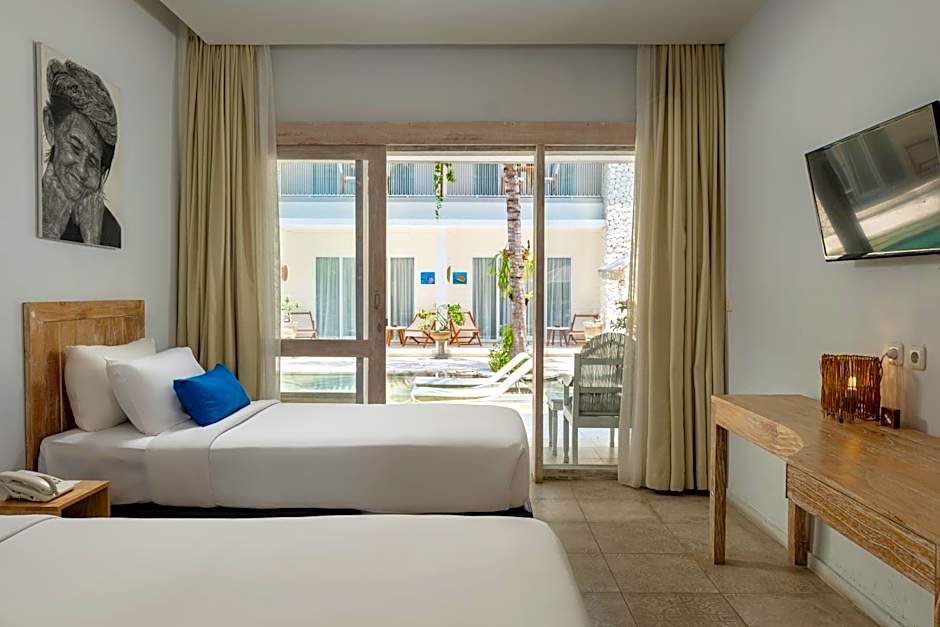 All deluxe garden rooms are located on the ground floor and direct acces to the lush tropical garden, consists of double or twin beds with air conditioning, flat TV screen, freshwater shower with an outdoor bathroom.