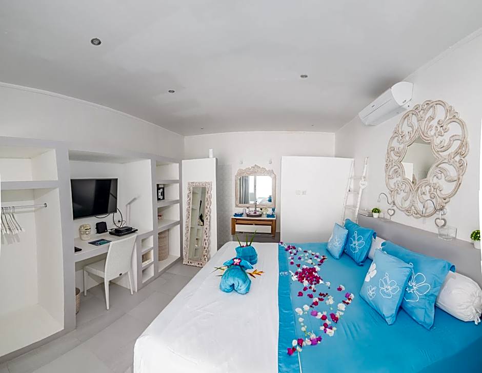 My stay at Villa Gili Bali Beach was so nice that I don't even know where to start! Well, the hotel is beautiful! When you enter the room, it's like you're entering in a heavenly place, due to the tones of white and blue. The room has good lighting, an air conditioner and fan, which was great for Gili's heat. Location wise: amazing! It's away from the center, therefore far from the noise, but very easy and quick to reach. The hotel provides bikes free of charge for every client. The view from the room balcony is amazing anytime of the day! The staff were always very warm and welcoming, especially Yati, who always greeted me by my name and with a big smile whenever I showed up! When I arrived, she gave me a map of the island with all the routes and suggestions on places to eat and activities to do, which was more than helpful! She also took care of all my needs, even late at night when I asked for a blanket through whatsapp! The pool is very nice and big enough. Breakfast: amazing! The smoothie bowls are the best!! Although they do not provide a kettle, there's tea or coffee always available downstairs. If you, as me, look for a bedroom which is all closed (including the toilet) and clean, this is your place! As I have a problem with insects, I always look for closed Villas and this is one of it.