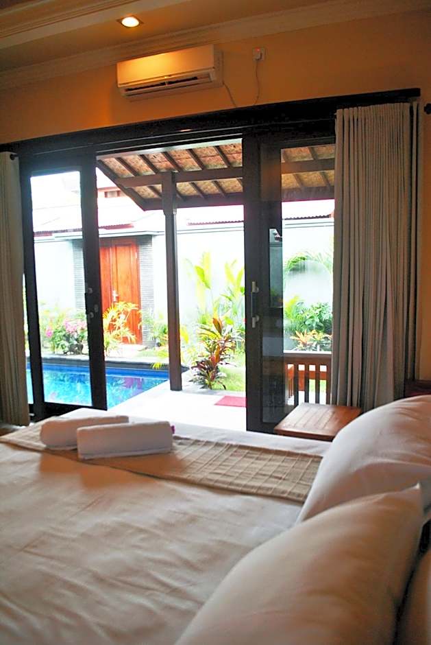 Overlooking the pool, this villa has a private terrace, kitchenette and a seating area. Private bathroom comes with a shower.