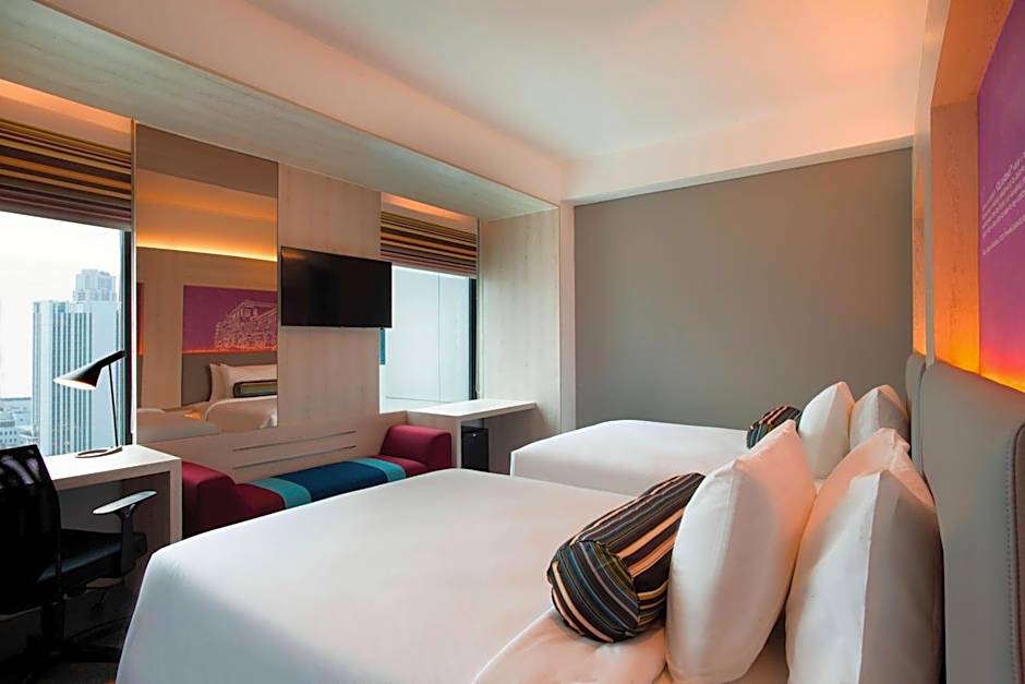 Welcome to the Aloft double room with 2 twin beds, covering 301 sqft. Ideal for 2 adults and 1 child, the room is non-smoking and equipped with air conditioning for a comfortable stay.