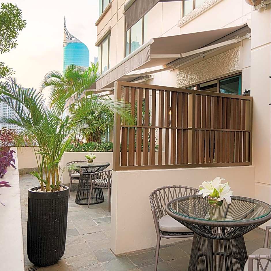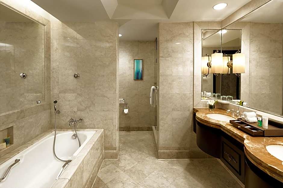 This air-conditioned 61 sqm suite comes with a flat-screen smart TV, mini-bar and personal safe. It offers pool or city view. There is a seating area with a sofa. Private bathroom has a bathtub and bathrobes. Guests enjoy a choice of firm and soft pillows from the pillow menu as well as crisp linens. Guests enjoy: - Afternoon tea at Blue Terrace - Evening Cocktail at Jimbaran Lounge