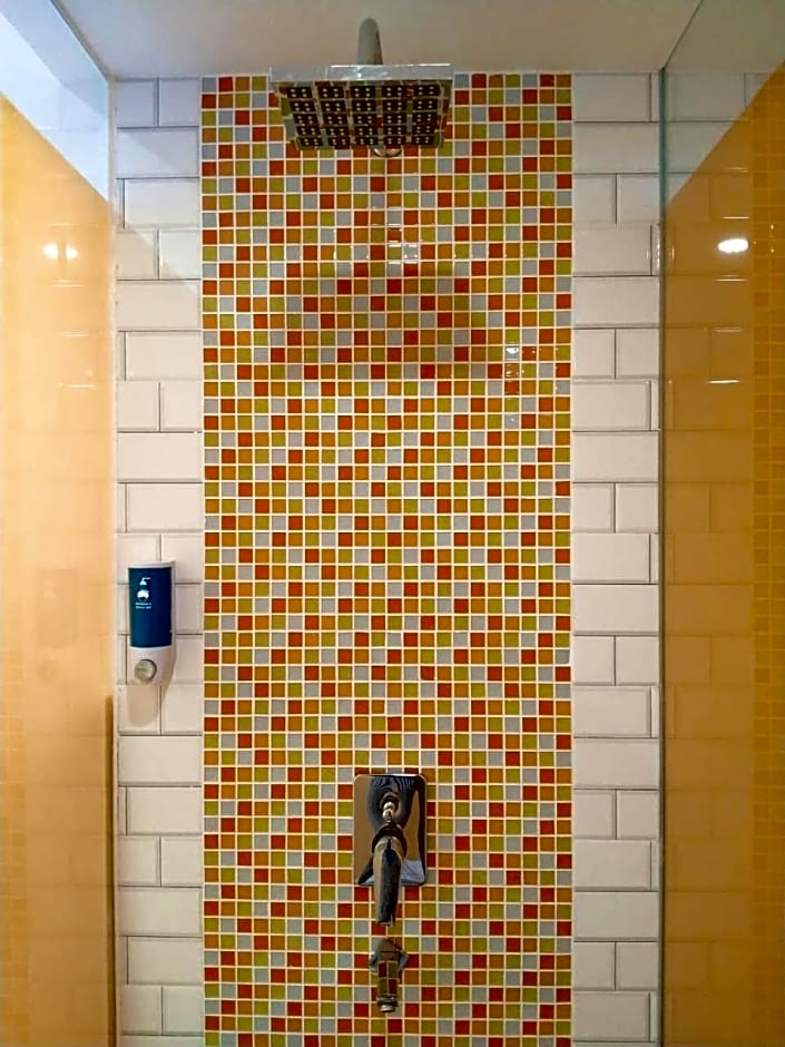 There's only one trash bin in the whole room, I would've liked to have another in the bathroom. The bathroom and toilet also have only one shared door, so if you have another person staying with you, you can't have two people using the shower and toilet each. The shower also doesn't get too hot.
