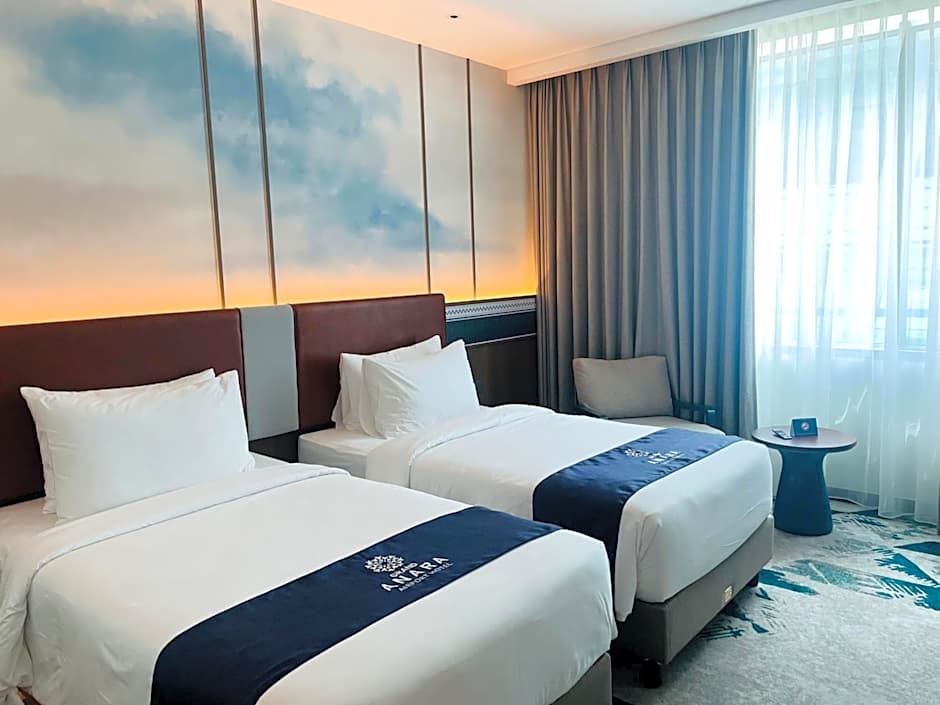Nestled conveniently at Bandar Udara Internasional Soekarno–Hatta, the Grand Anara Airport Hotel offers a delightful retreat just 13.8mi from the bustling heart of Jakarta. With its sleek 4-star rating, this hotel ensures your stay is both comfortable and memorable, whether you're catching a flight or exploring the vibrant surroundings of Tangerang. Starting at an attractive minimum price, you can indulge in a range of amenities including complimentary WiFi, a refreshing outdoor pool, and a cozy restaurant—perfect for unwinding after a busy day.