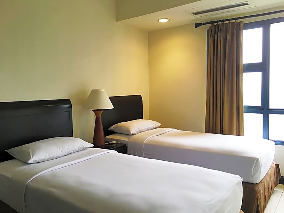 You must ask the housekeeping to clean the room when you have just checked in. The refrigerator needs some cleaning. No microwave. The changing room is difficult to locate, poorly maintained, and inadequately lit. As a result, many guests opt to return to their rooms without changing out of their wet swimwear, past the lobby. Pool is very dark at night. No pool lamp at all. Some of the pool lamps are falling apart from its position. The bathroom floor is very slippery and no bath curtain for bathtub. The handheld shower is leaked so water splashed everywhere when we use it. However, we look forward to seeing the improvement during our next stay.