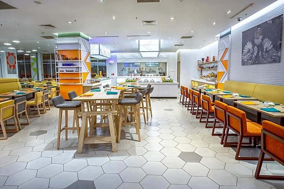 Yes, the hotel has a restaurant on site called HARRIS Cafe, offering Indonesian and international cuisines in a modern and family-friendly ambiance.
