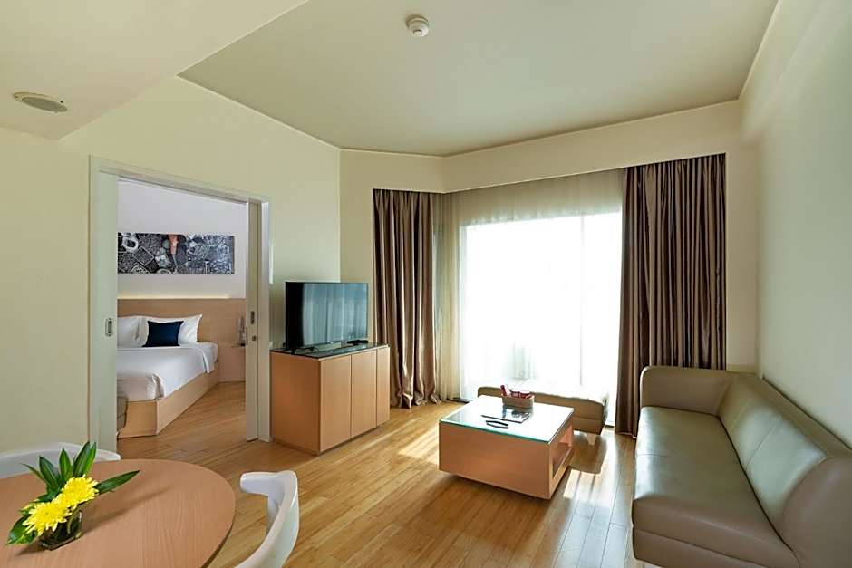 This spacious suite features 1 living room, 1 separate bedroom and 1 bathroom with a bath and free toiletries. The air-conditioned suite features a flat-screen TV with cable channels, a mini-bar, a tea and coffee maker, a dining area as well as city views. The unit has 2 beds.