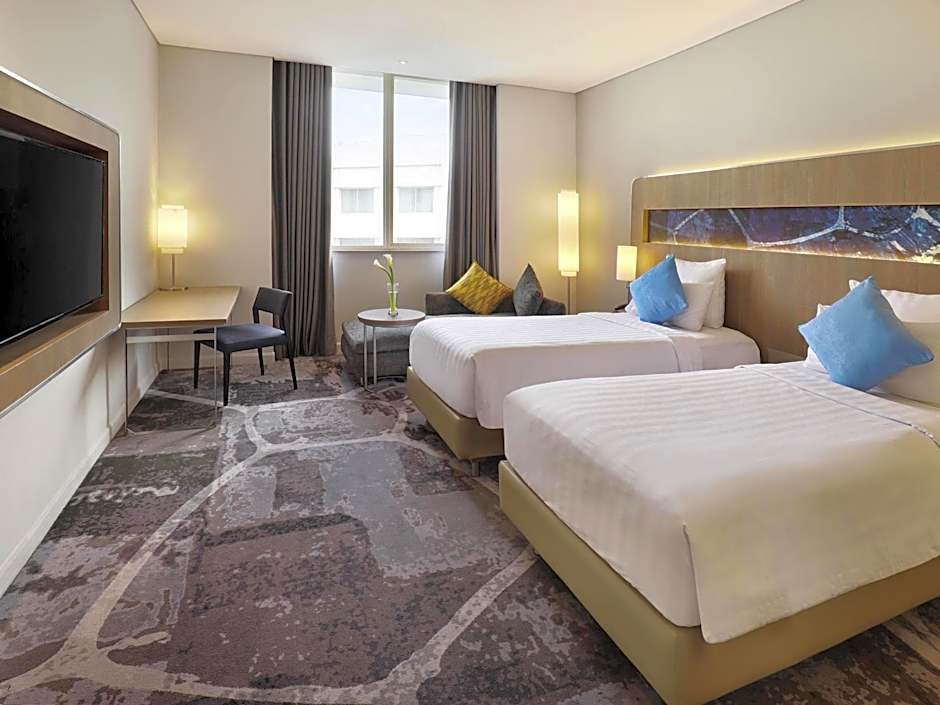 Novotel Jakarta Mangga Dua Square doesn't disappoint when it comes to leisure activities. The hotel boasts two stunning infinity pools, both available all year round. Guests of all ages can enjoy Pool 1, located outdoors, while Pool 2 is specifically reserved for the little ones, making it a fun and safe space for kids to splash around. With the gorgeous setting and infinity features, these pools offer a relaxing escape from the bustling city life of Jakarta.