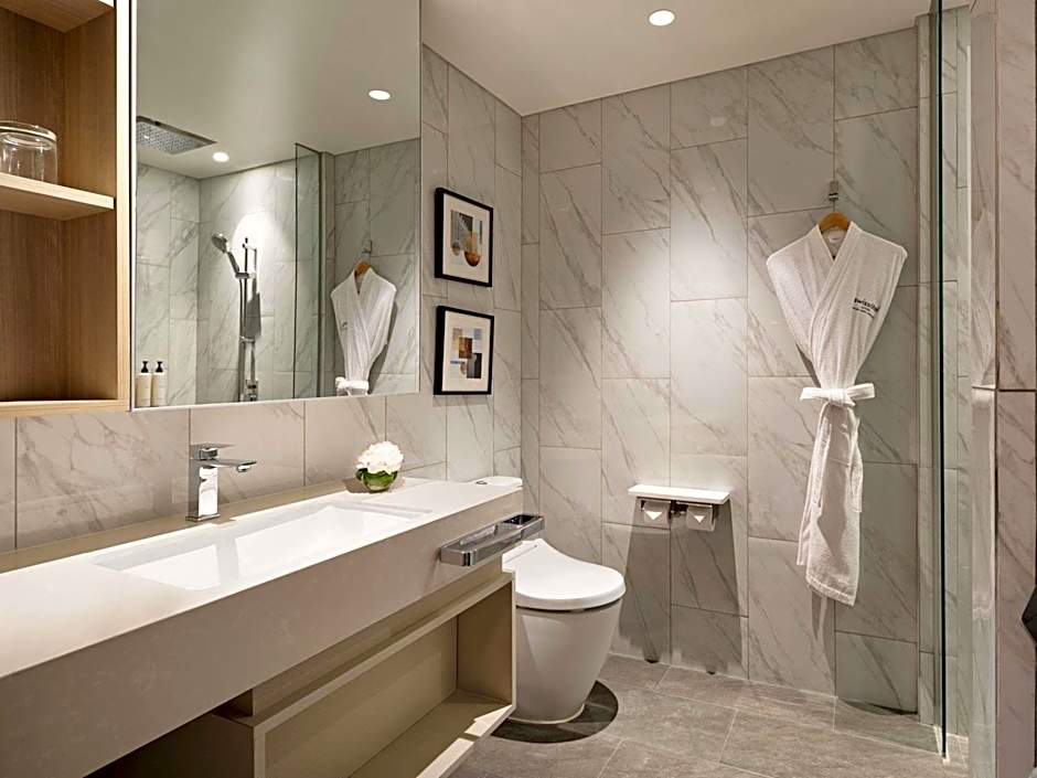 The air-conditioned apartment has 1 bedroom and 1 bathroom with a bath and a shower. The apartment's kitchen, which features a refrigerator and a microwave, is available for cooking and storing food. The apartment is furnished with a desk and a seating area and features a washing machine, a tea and coffee maker and city views. The unit has 1 bed.