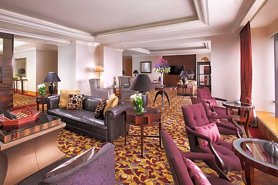 The hotel offers a variety of rooms including Grand, Junior Suite, and Executive 2 Double Beds Suite, all accommodating 2 adults and 1 child, with smoking not allowed. Beds range from double to king size, with room sizes varying from 678 sqft double rooms to a 2691 sqft King Suite. Some rooms provide access to the Club Lounge while others do not.