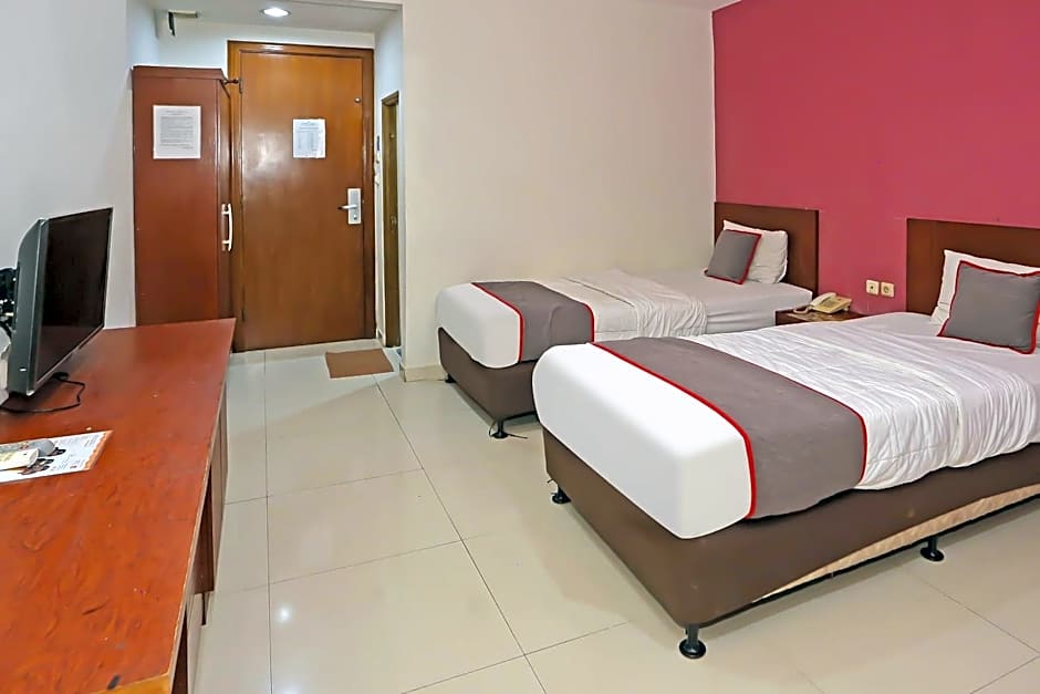 Townhouse OAK Hotel Fiducia Pasar Minggu is a 3-star stay in Jakarta, Indonesia, located at 10 Jalan Raya Pasar Minggu. Rates start from $15 per night, offering a budget-friendly option for travelers. Featured amenities include free parking, free WiFi, an on-site restaurant, air conditioning, and a 24-hour front desk, with upper floors accessible by elevator and on-site parking.