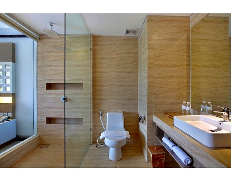 Food lovers will find a tempting lineup of on-site dining. Hiu Restaurant offers a Modern setting with American, Chinese, Indonesian, Asian, and International cuisines; Baruna Sky Lounge serves International offerings for cocktails and bites; and Sea House adds another waterfront option. In the evenings, live music performances provide a complimentary soundtrack to sunset dining by the sea.