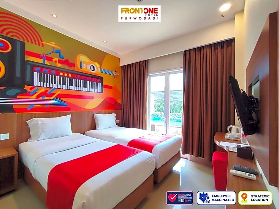Front One Hotel Purwodadi offers Superior Twin and Double rooms, as well as Deluxe Twin and Double rooms. All rooms are non-smoking, with a room size of 269 sqft, and accommodate 2 adults. The Superior rooms have twin or double beds, while the Deluxe rooms offer double or twin beds.