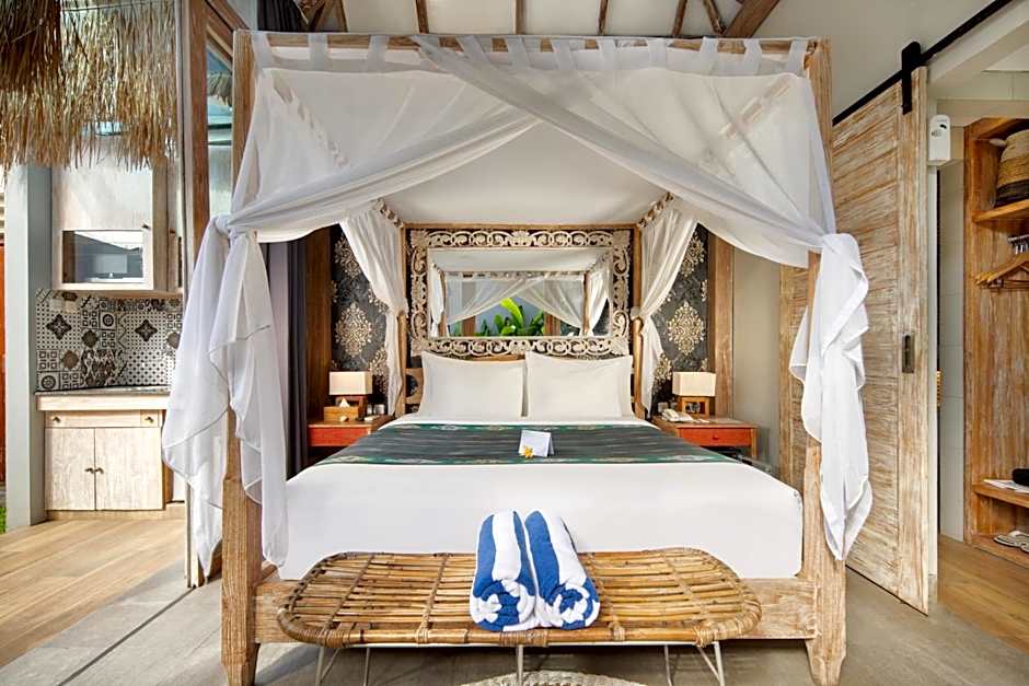 The hotel offers a Loft Suite with Private Pool, accommodating 2 adults and 1 child, with a queen-size bed and a sofa bed, with no smoking allowed in the 484 sqft suite. Additionally, guests can stay in a One-Bedroom Villa with Private Pool, which allows smoking, fits 2 adults and 1 child, has a king-size bed, and a sofa bed in the 667 sqft villa. For larger groups, the Two-Bedroom Loft Suite with Private Pool suits 4 adults and 2 children, featuring a queen-size bed, two twin beds, and a sofa bed, without smoking permitted in the 861 sqft suite.