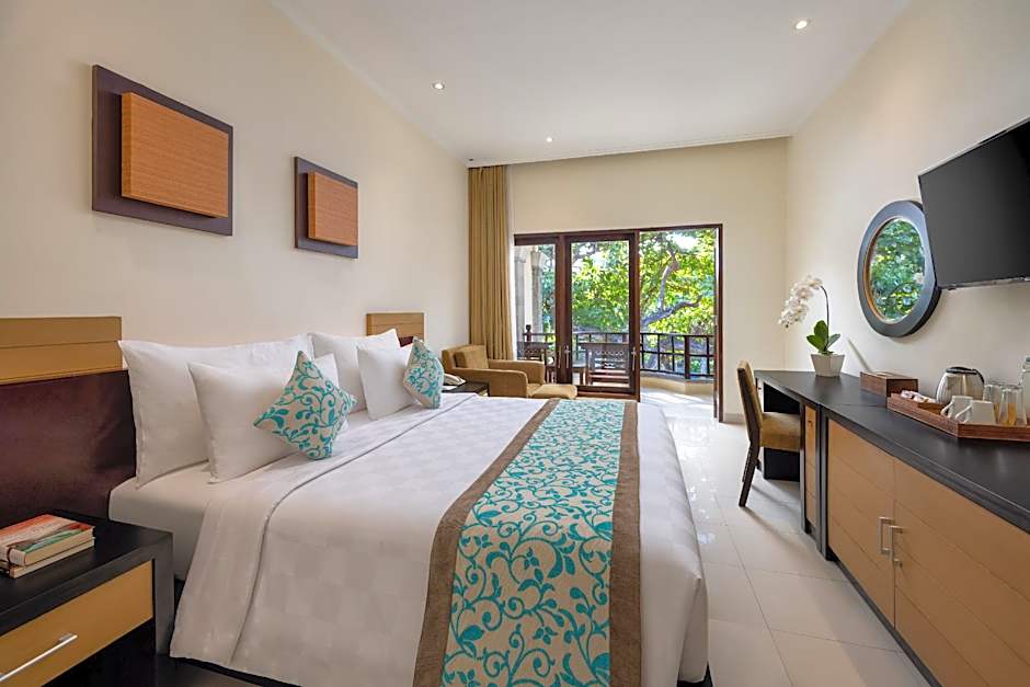 On-site dining comes courtesy of Beras Merah Waroeng & Bar, serving Indonesian cuisine for convenient meals without leaving the property. Sun-loving travelers can also lounge on beach chairs and loungers to soak up coastal vibes after a dip or a stroll along Kartika Plaza Street.