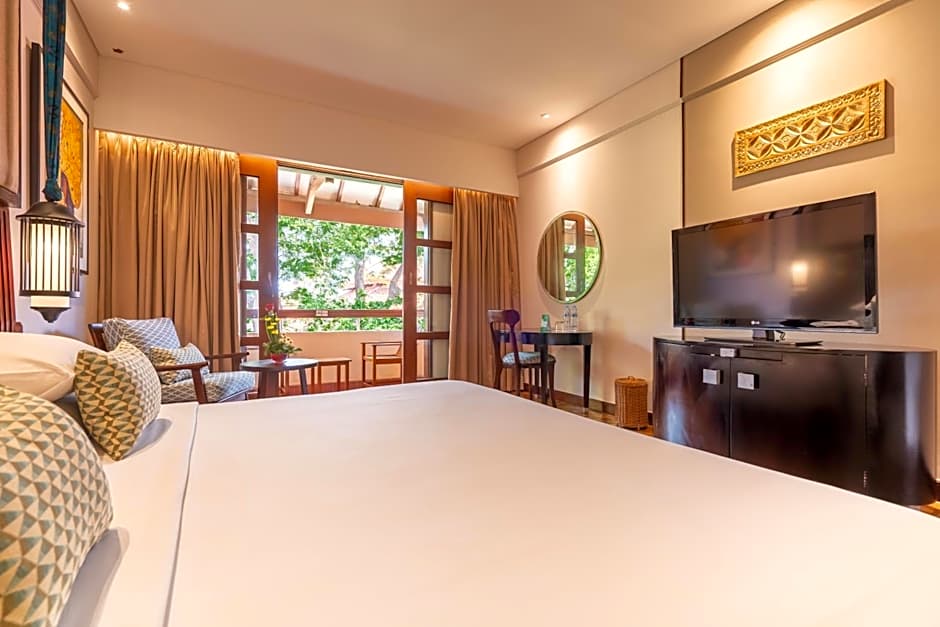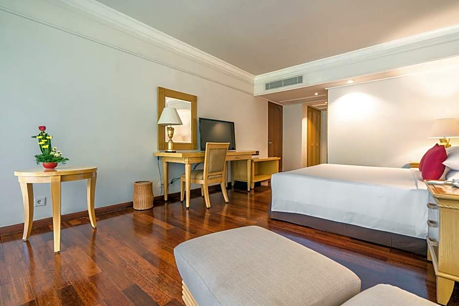 Romantic Double Room with Free Benefit Romantic Double Room with Free Benefit Featuring a four-poster bed, this large air-conditioned room is equipped with a flat-screen TV, a personal safe, ironing facilities and a refrigerator. Private bathroom comes with a hairdryer, slippers and free toiletries. This room can accommodate 1 extra bed for children. Guests enjoy the following benefits: - Guests staying minimum 7 nights get one-time 15 minutes back shoulder massage at the SPA - Late check-out until 14:00hrs