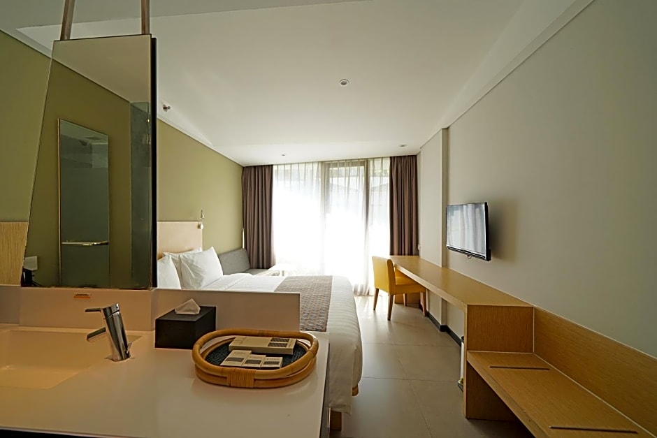 Evenings at Episode Kuta are just as delightful, featuring vibrant garden views from your balcony. Relax on the beach chairs, take a leisurely stroll around the lush garden, or satisfy your cravings with the kid-friendly buffet at the restaurant. Whether you're here for a romantic getaway or a fun family holiday, this hotel has something for everyone. Your unforgettable Bali adventure awaits!