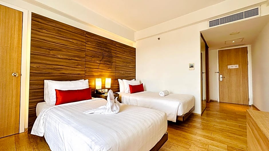 The Grand Zuri Kuta Bali Hotel offers a variety of room types including Suites, Twin, and Double rooms. Occupancy varies, accommodating either 2 adults, 2 children or 2 adults in the rooms. Smoking is not allowed in any of the rooms. Bed sizes include Queen size beds for couples and Twin beds for individual guests.