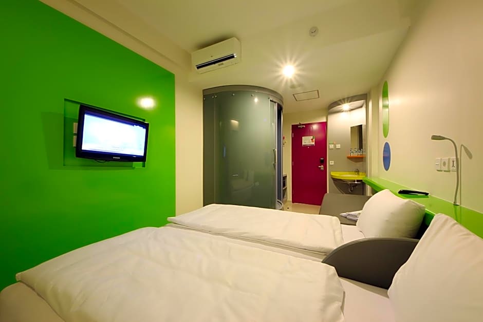 The hotel offers POP! Double or Twin Rooms, accommodating 2 adults and 1 child, with a Queen size bed and two Twin beds. The rooms do not allow smoking and have a room size of 172 sqft.