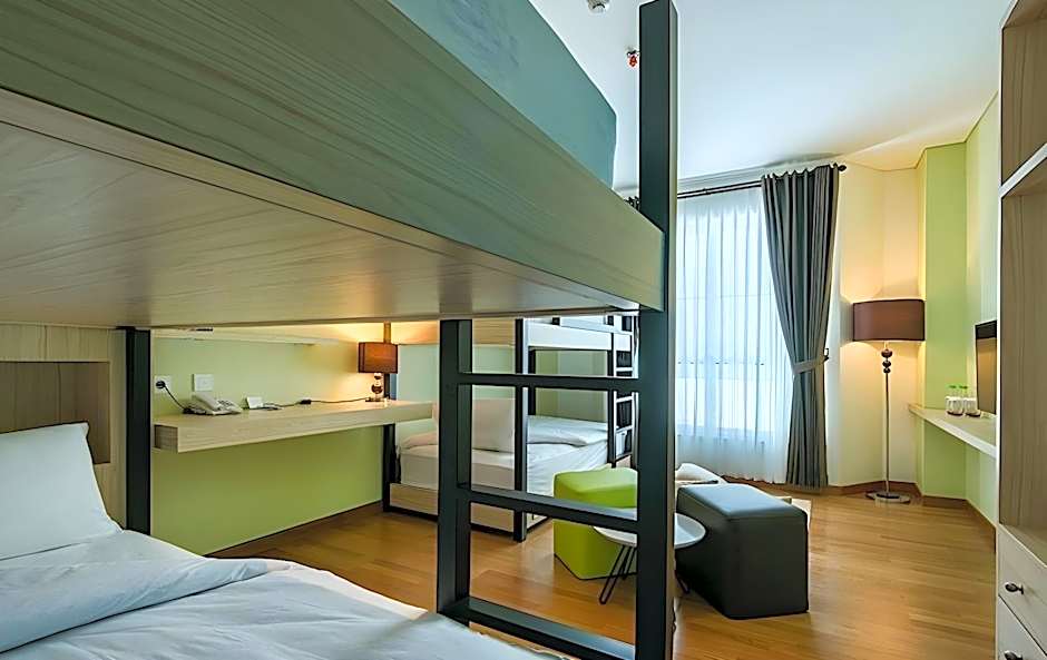 Located on the ground floor near the lobby, this quadruple room is fitted with air conditioning, a flat-screen TV and 2 wardrobes. It has a seating area and a private bathroom with a separate shower and toilet area. Benefits include: - 4 bottles of mineral water daily - One-time complimentary mini-bar