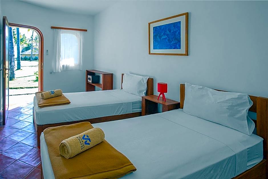 It’s located in a amazingly beautiful and peaceful spot!! The Standard rooms are simple but very comfortable with a great hot shower. Food is very good and staff very friendly. You can go for a little swim right in front of Whales and Waves and if you want to swim more you just walk across to the next beach ( 10 -15min). The area to do some yoga or a workout is great and you can just grab a mat if you need to. It is just a wonderful place to relax, do some surfing or to go for a dive in the new dive center nearby!