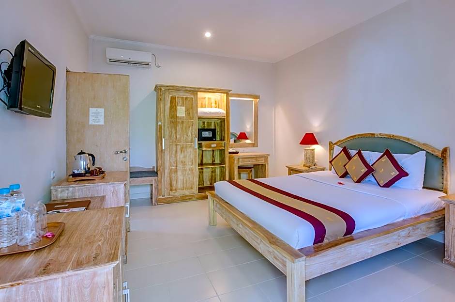 As always, Balinese staff are lovely. They attended promptly to requests when things in the room were broken. The mainly Aussie guests were incredibly friendly and every time we stepped out of our room a ‘hi’ or ‘morning’ was said. Lots of the tourists knew other guests from previous stays. We were facing the pool on ground floor so there was … ‘nowhere’ to sit privately. This place is perfect for lonely people who want to make friends on their holidays. Pool was cold and clean. Very deep but the steps along the side were helpful if you needed a landing place. The room was large and had bedside lights. No chair or rack for clothes. Despite being built of concrete, the sound of guests above woke us up every morning.