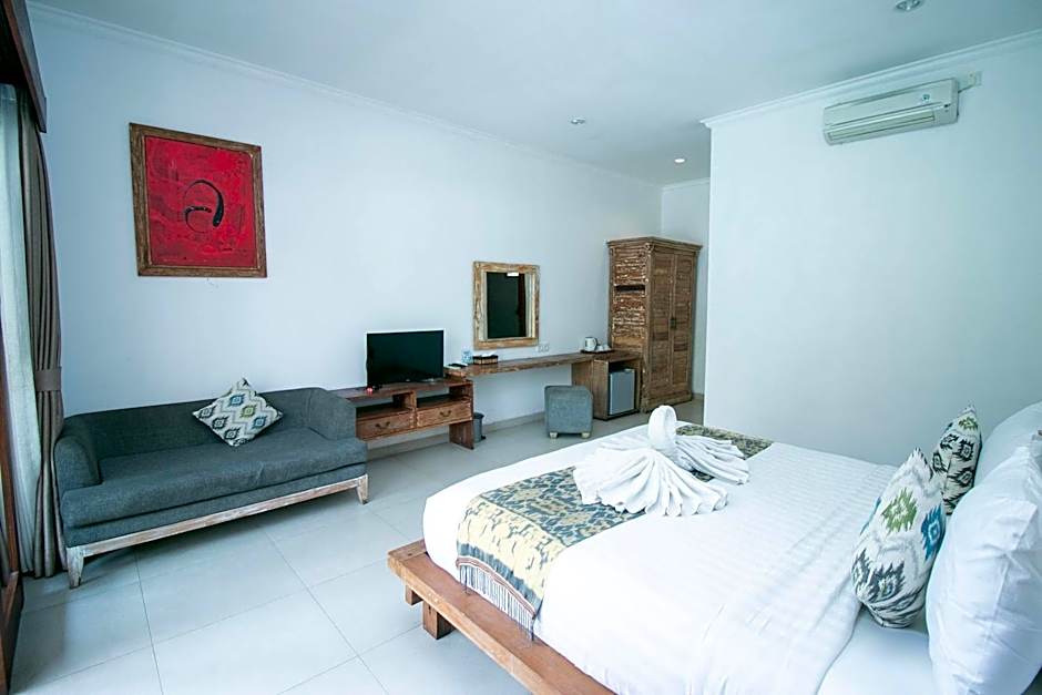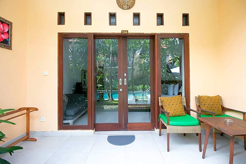 Dive into the refreshing outdoor swimming pool or let your little ones splash around in the kids' pool while you unwind on the terrace, surrounded by beautiful garden views. The free beach chairs and loungers ensure your days at the shore are filled with sunbasking and sandcastle building! Enjoy complimentary perks like WiFi, private parking, and a daily breakfast to fuel your adventures. With a 24-hour front desk at your service, you can explore all that Legian has to offer without a worry in the world!