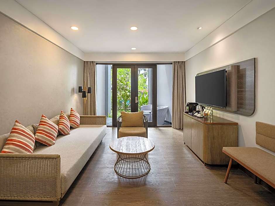 Room features a 55-inch Smart LED TV, yoga kit and bathroom with a separate bathtub and shower. Extra bed can be accommodated with a surcharge. Guests enjoy views of the garden or pool, from the balcony or terrace.