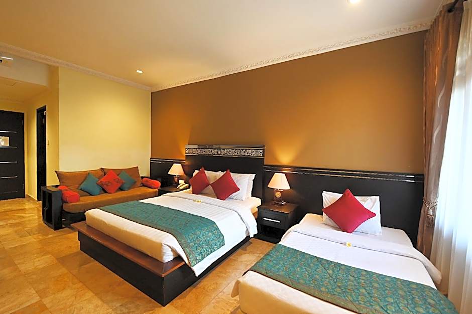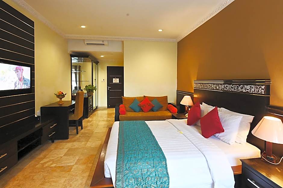 Puri Dewa Bharata Hotel & Villas is a three-star hotel in Legian, Indonesia. Located about 0,5mi from the city center, it offers a convenient base for exploring the area.