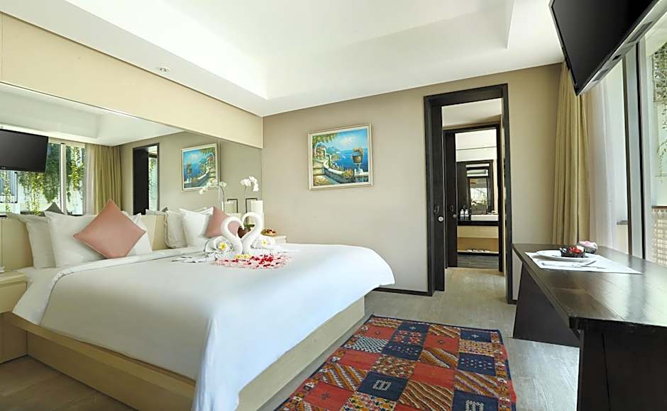 Guests at The Akmani Legian can spend their time at the hotel enjoying a range of leisure amenities. They can relax and unwind in the spa, which offers wellness packages and various treatments. The hotel has a beautiful outdoor swimming pool where guests can take a refreshing swim and enjoy the sun on the sun deck. There is also a separate kids' pool for the younger guests to enjoy.