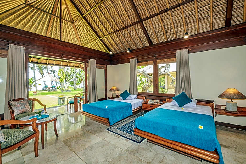Puri Bagus Lovina is a 4-star resort set along the beachfront in Lovina, Indonesia, about 2mi from the city center. The address is Jl. Raya Seririt Singaraja, Desa Pemaron. Breakfast is offered, and rates start from $86 per night.