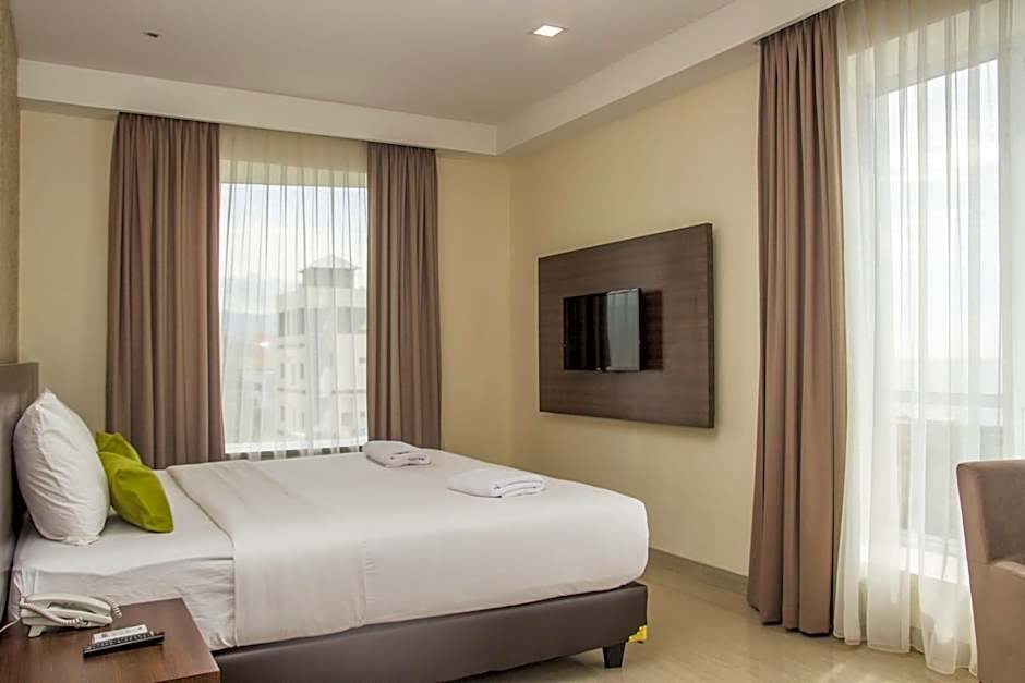 Apart from some black long hairs on the floor and in the bathroom and stains on the sheet, we had a bad experience with their service to book transport to Gorontalo. We are a family of 3 with a one year old. For 250.000 IDR per person we booked a minivan through the hotel, our son joined for free. We were told it would pick us up at 8am. We just arrived at the rooftop for breakfast when we got a call the taxi would come in 10min at 7.15, we tried to rush as much as we could but not all items were available and there was no take away box, so we didn't have a proper breakfast. In the lobby we waited and waited and were told every 5 minutes the taxi would be here soon. Twice we went down with all luggage as the taxi would have arrived, but it did not. After more than one hour wait, the taxi was still not here and we were told it was stuck in traffic and we could go back upstairs to have breakfast... At 8.30 a taxi came, but after 10min driving it stopped at a bus stop for 1.5hours as the driver told us he needed breakfast himself. Than suddenly the driver was in a rush to leave, started the car and while we were still getting inside with our child, he started driving already. Last two things is ofcourse not the hotels fault but to warn future hotel guests to never book any transport through the driver of the hotel and just make arrangements yourself. We would have appreciated being told the taxi was not really coming now, so we could have enjoyed breakfast slowly and be prepared for the 5+nohour journey.