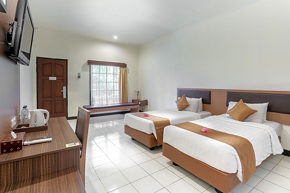 The Lombok Garden Hotel offers several types of rooms including Deluxe Twin Room Only, Superdeluxe Room with Pool View, Superior, Superior Room-Only, and Deluxe Twin Room. The rooms have a variety of bed sizes including Twin beds and King size bed. All rooms have a room size between 344 sqft and 409 sqft and are non-smoking. Each room can accommodate 2 adults.